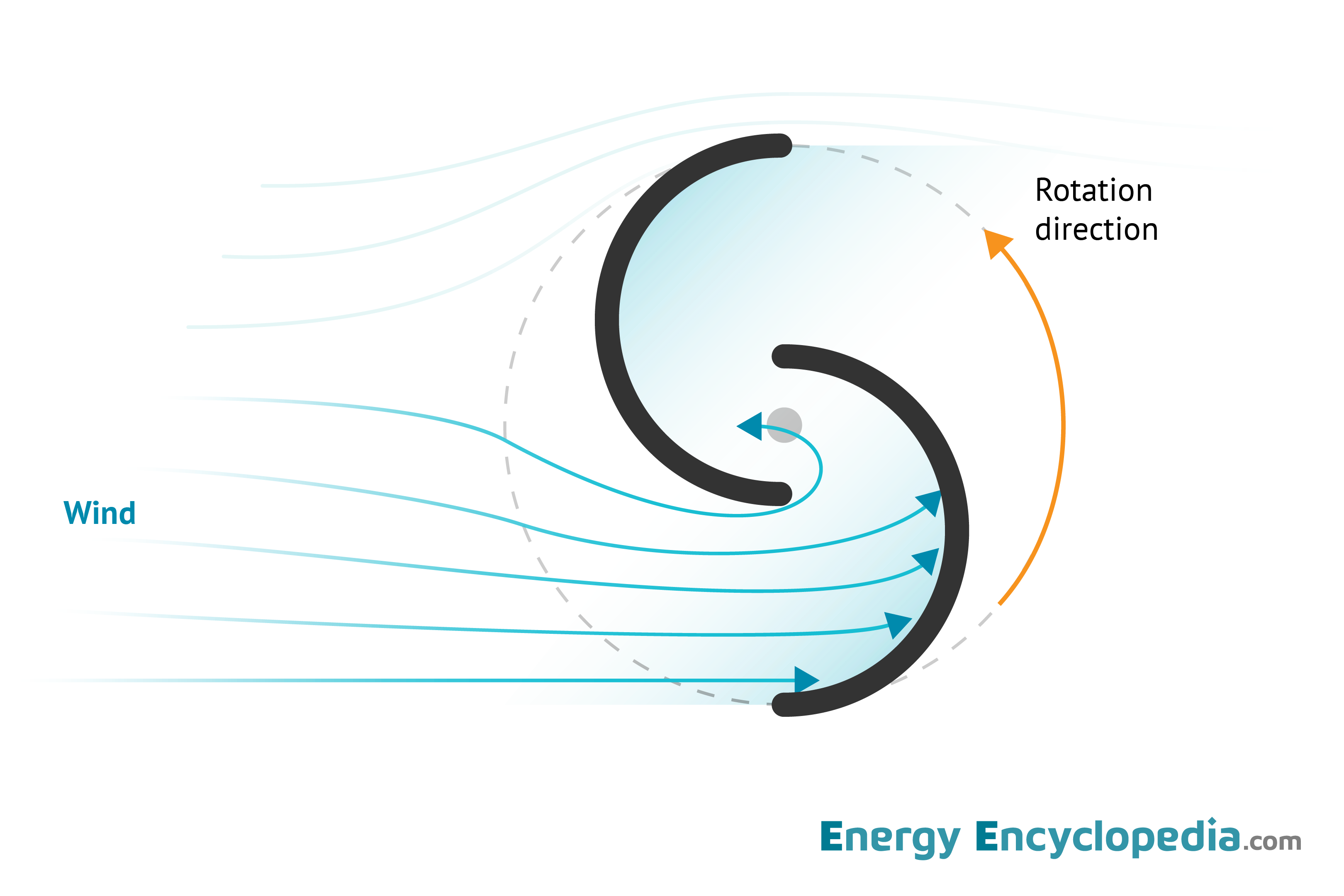 The principle of how the wind drives a vertical Savonius wind turbine.