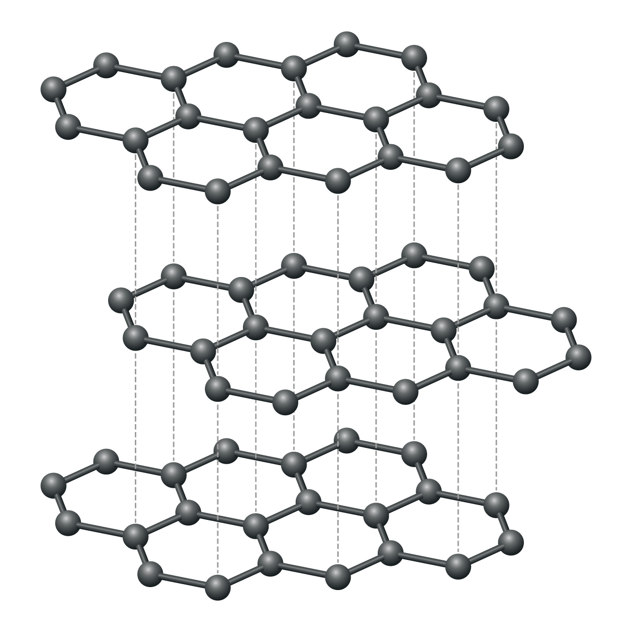 A black crystalline form of carbon. Graphite is black and soft, with a layered structure that consists of hexagonal molecules arranged in wide sheets. It has a broad range of industrial uses; it is probably best known as pencil lead.