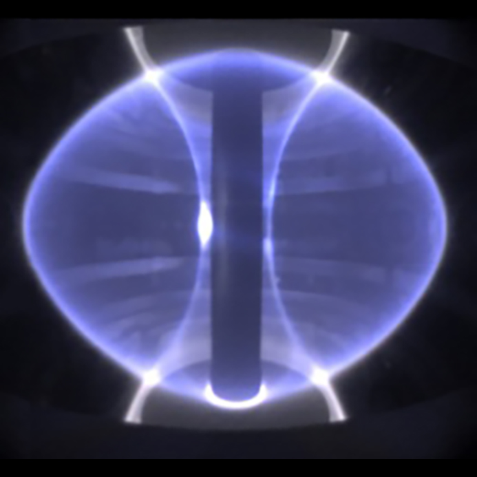 Tokamak with a low aspect ratio and a round plasma in a shape resembling a cored apple. While a conventional tokamak has a more donut-like shape with a central hole, a spherical tokamak minimizes this hole to achieve a higher compactness. A single common conductor runs through the centre of the tokamak, to which toroidal magnets in the shape of semicircles are connected. Due to its more compact shape, the spherical tokamak achieves the same plasma parameters as a conventional tokamak with a lower magnetic field. This allows it to be smaller and cheaper. Typical spherical tokamaks are the Small Tight Aspect Ratio Tokamak (START) or the Mega Ampere Spherical Tokamak (MAST).