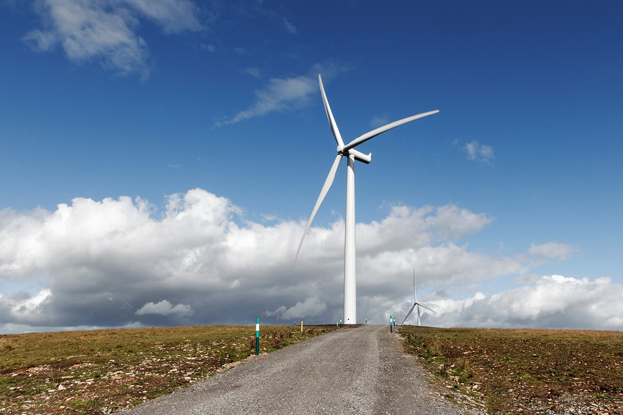 A device that converts the kinetic energy of the wind into rotational motion by means of drag or lift acting on the turbine blades. The rotating turbine then drives a generator through a gearbox that produces electricity. Horizontal axis turbines are the most commonly used and operate on the principle of lift. There are also less efficient drag turbines, where the wind simply pushes against the blades. Vertical axis turbines are less commonly used, but have the advantage of not having to turn in the direction of the wind and their gearbox and generator are located on the ground.