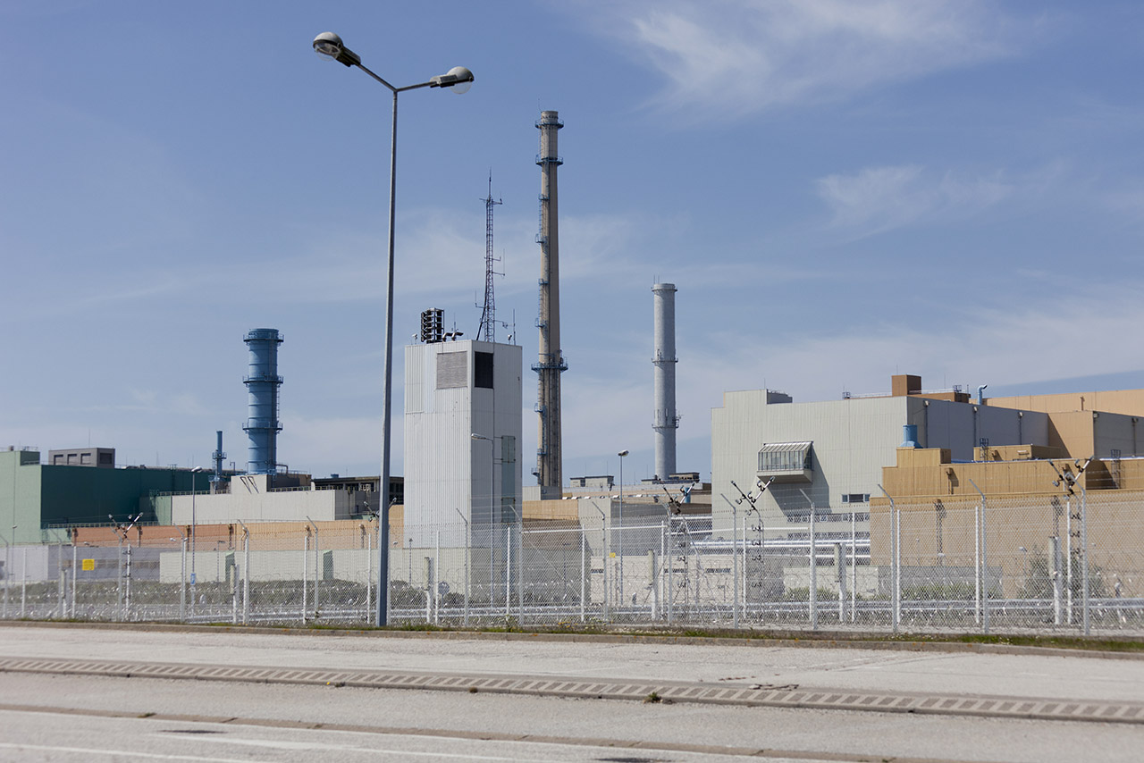 Contrast of the countryside scenery and the World’s largest nuclear fuel reprocessing facilities in La Hague, France.
