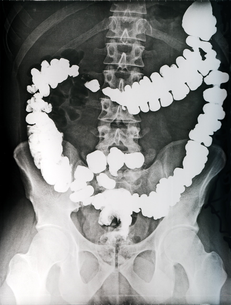 Prior to examination by computer tomography, the doctor administers a contrast medium solution to the patient.