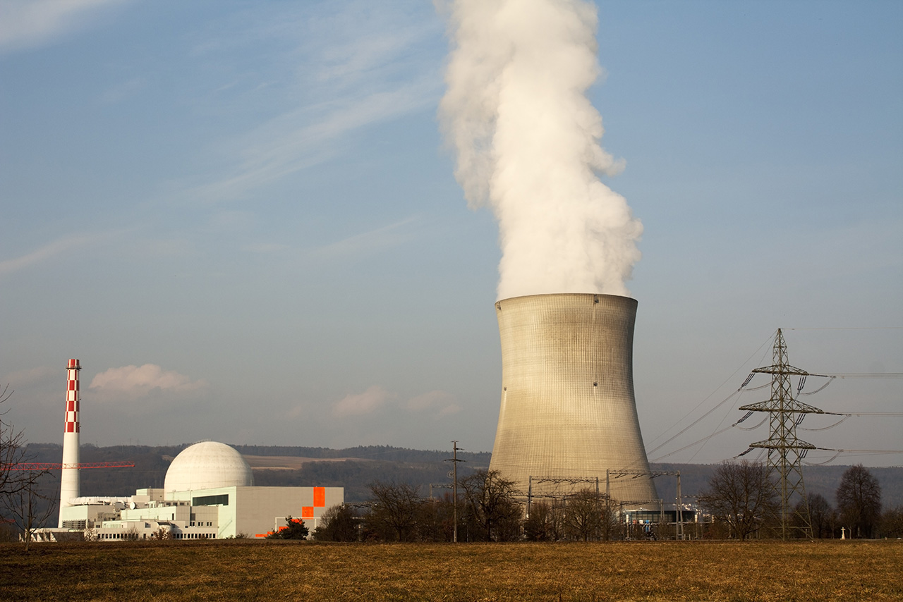 A nuclear power plant is basically a thermal power plant in which the heat source is an ongoing atomic fission reaction. A coolant removes the released heat and in a steam generator this heat is transferred to water in a secondary circuit where steam is generated. This steam powers a steam turbine that drives a generator to generate electricity.