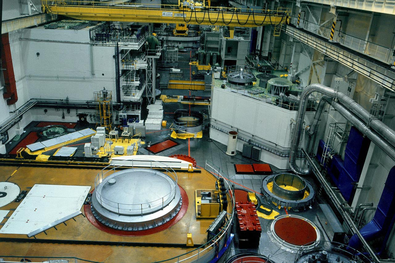 The so-called nuclear side of a nuclear power plant is composed of the reactor, the primary circuit, and a steam generator. These components are usually enclosed in a concrete enclosure know as the containment. It provides protection from outside damage and at the same time, it prevents the release of radioactivity in case a serious accident occurs inside the reactor. Modern containments are able to withstand the impact of an airplane. They are constructed of pre-stressed concrete and a slight constant overpressure is maintained inside the containment.