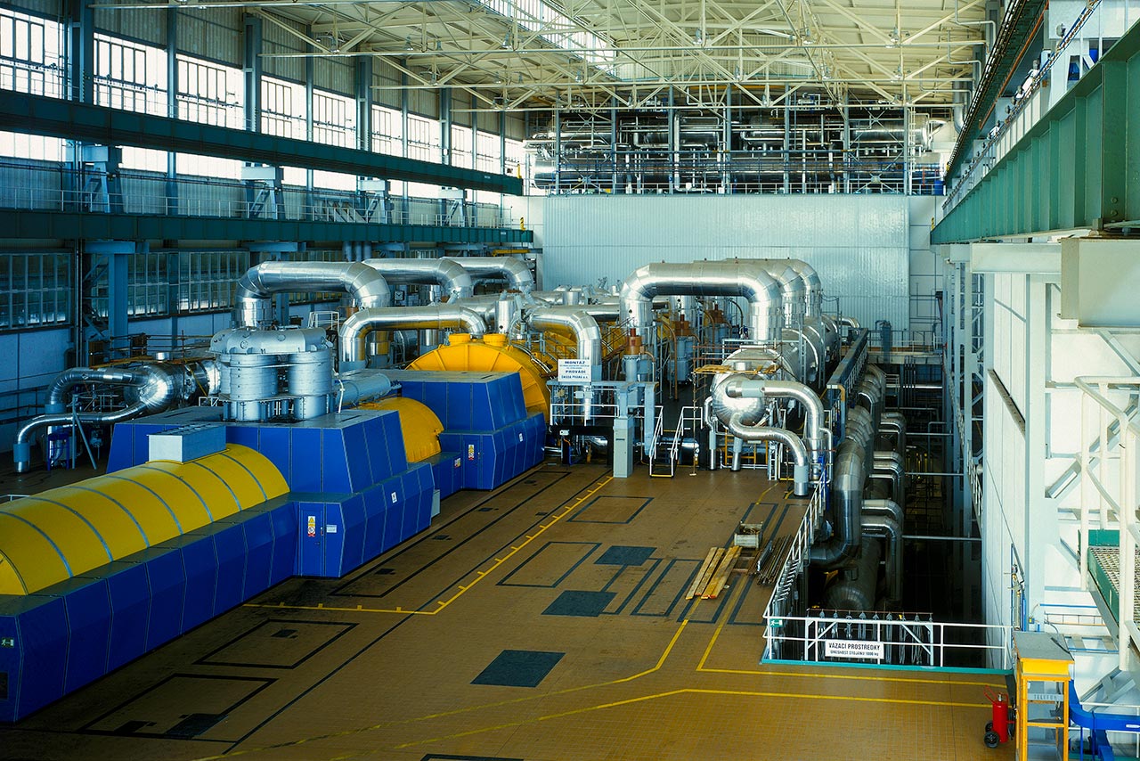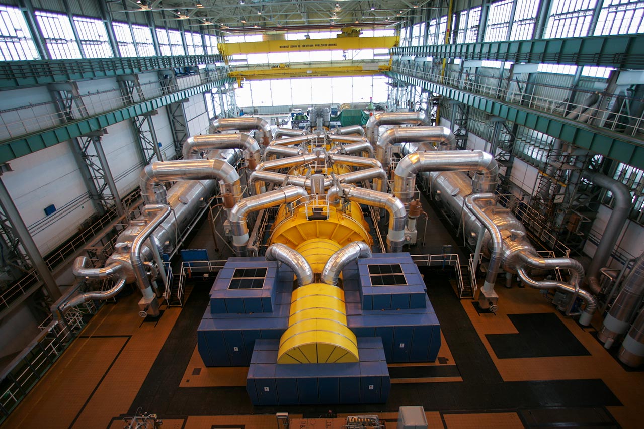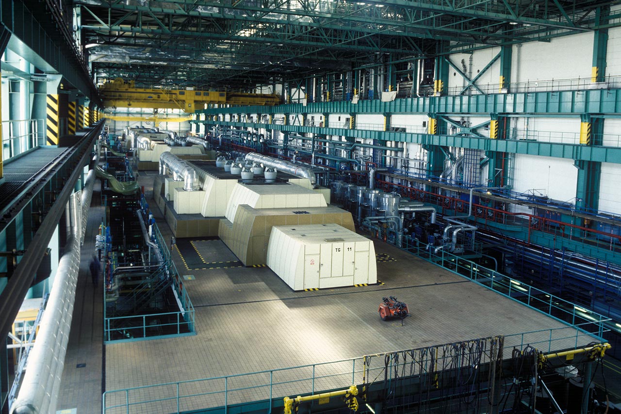 The power plant’s tertiary circuit provides steam condensation at the turbine output. Condensation heat is removed through the cooling towers into the atmosphere.