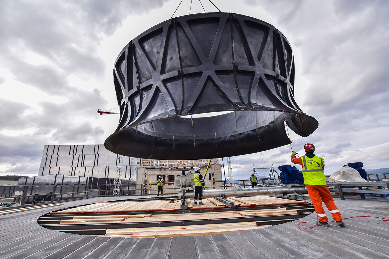 The cooling water system provides cooling for the blanket and divertor as well as for auxiliary systems such as radio frequency heating and for other systems like current drive systems, the chilled water system, the cryogenic system, and the coil power supply and distribution system. It consists of about 36 kilometres of piping arranged into loops and heat exchangers of the tokamak cooling water system (TCWS), the component cooling water system (CCWS), the chilled water system (CHWS) and the heat rejection system (HRS). TCWS components will be “nuclear-grade” as they must comply with French nuclear pressure equipment directives. As an experimental device, the ITER is not equipped for electricity generation, so all produced heat needs to be dissipated via a heat rejection system consisting of induced-draft cooling towers. To prevent a rise of mineral concentration in the cooling water, part of it will be continuously discharged from the system and replaced by water from the Canal de Provence. Discharged water’s temperature will be measured, as well as its pH level, and presence of pollutants and, if it meets the strict environmental criteria, released into the Durance River. The amount of circulating cooling water is about 25,000 m³. Through the pipes of tokamak cooling water system (TCWS) it will surge at a flow rate of 5 m³/second, a velocity of 10 metres/second, and a pressure of 1.4 MPa (up to 5 MPa at the pump outlet). In contrast, in your household the water is delivered to the tap at a flow rate of 0.1 m³/ second, a velocity of 1 metre/ second, and at a pressure of around 350 kPa.