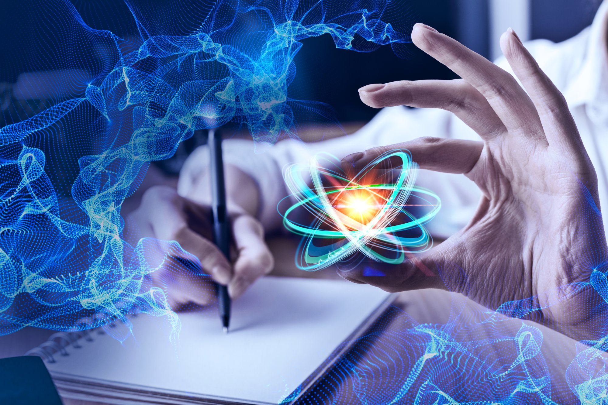 The size of an atom is in the tenths of nanometres (0.0000000001 m), and the nucleus is even 100,000 times smaller. From this ratio and the fact that the mass of protons is approximately 2,000 times greater than the mass of electrons, among other things, it follows that 99.999% of an atom is actually empty space ...