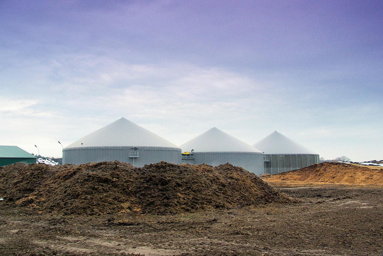 Material produced in animal husbandry (liquid pig manure, strawy cow manure, animal processing waste and food production waste) are processed in digesters at biogas stations. Anaerobic (without oxygen) fermentation processes transform this material into quality organic fertilizers and biogas, a fuel consisting mainly of methane and carbon dioxide.
