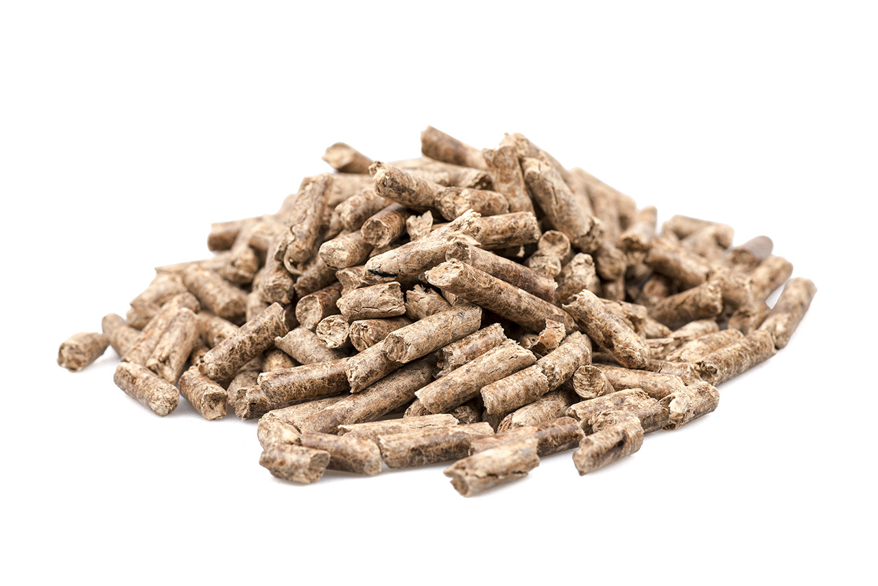Pellets are pressed from small material particles in pellet mills. By heating the wood material at a temperature around 100 °C, lignin contained in wood softens and glues the particles without the need for additional glue. The mass is then pressed through circular openings in the die under a pressure of 30 MPa. The produced pellets between 6 to 30 mm in diameter and 1 to 5 cm in length then have a volume of just a tenth of the volume of the introduced material. They contain very little water and their heating value lies between 15 and 20 MJ/kg. Pellets are used as fuel in automatic boilers replacing fossil fuels.