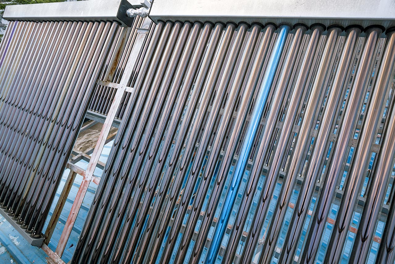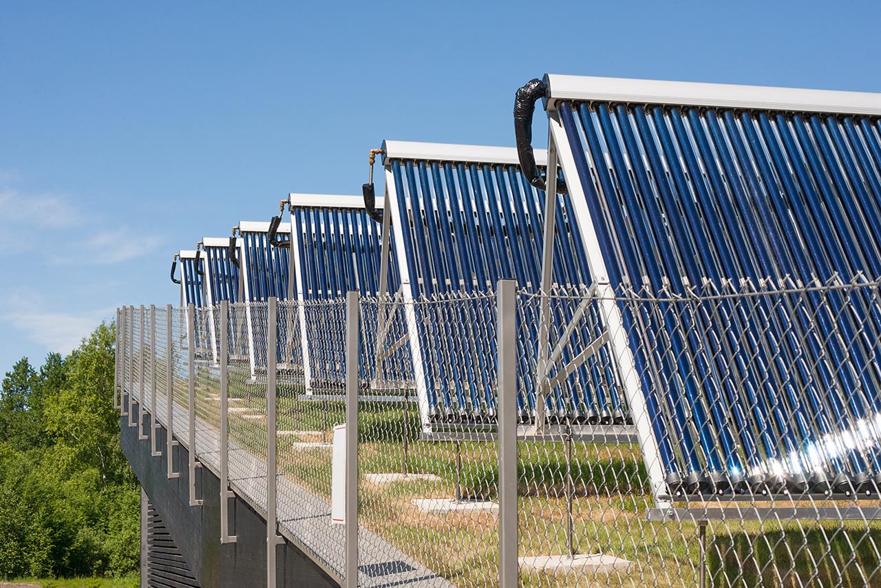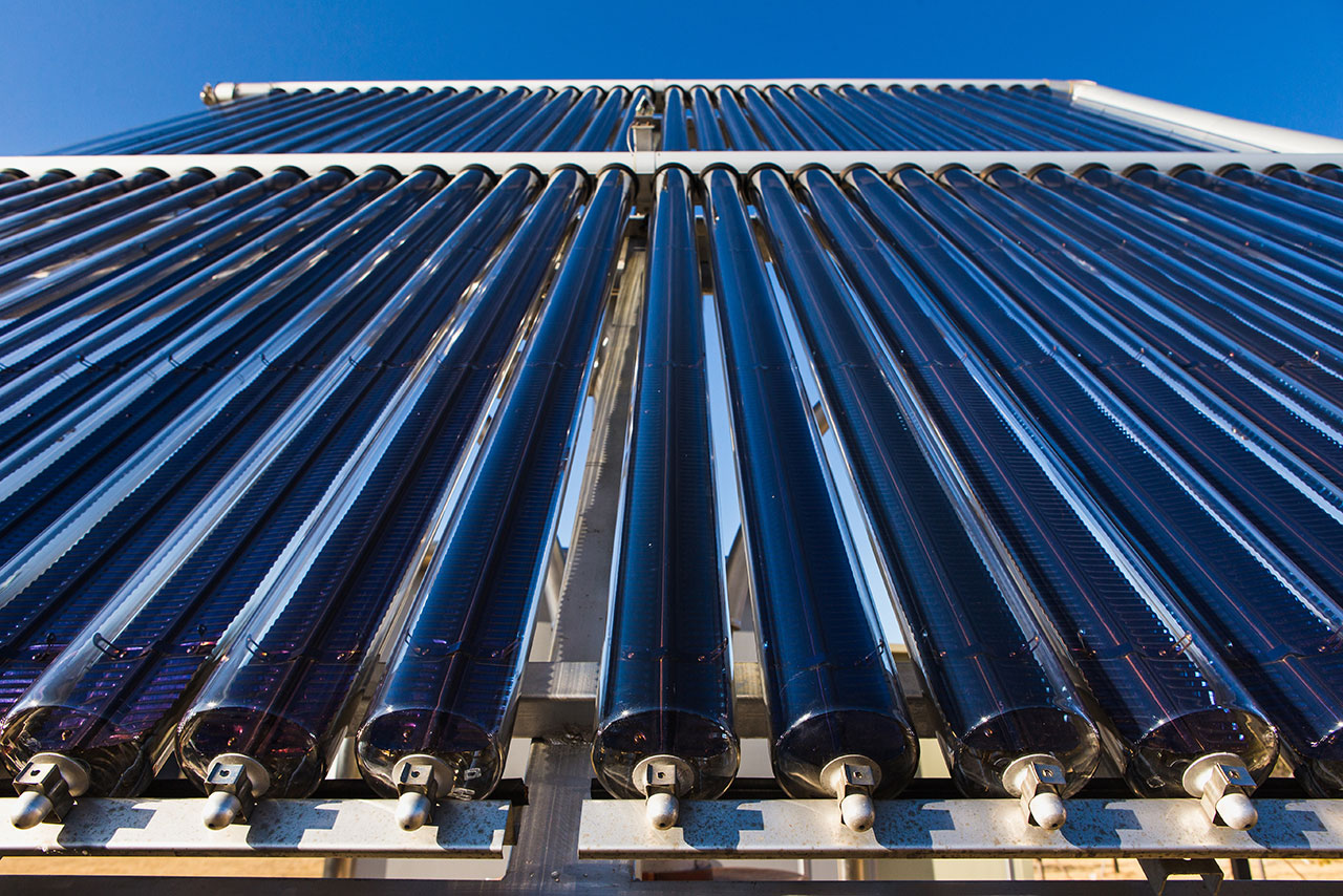 Evacuated tube solar collectors use a vacuum for insulation. Thanks to this design they lose less heat than other types of collectors and they reach higher efficiency at less irradiated sites and lower outside air temperatures.