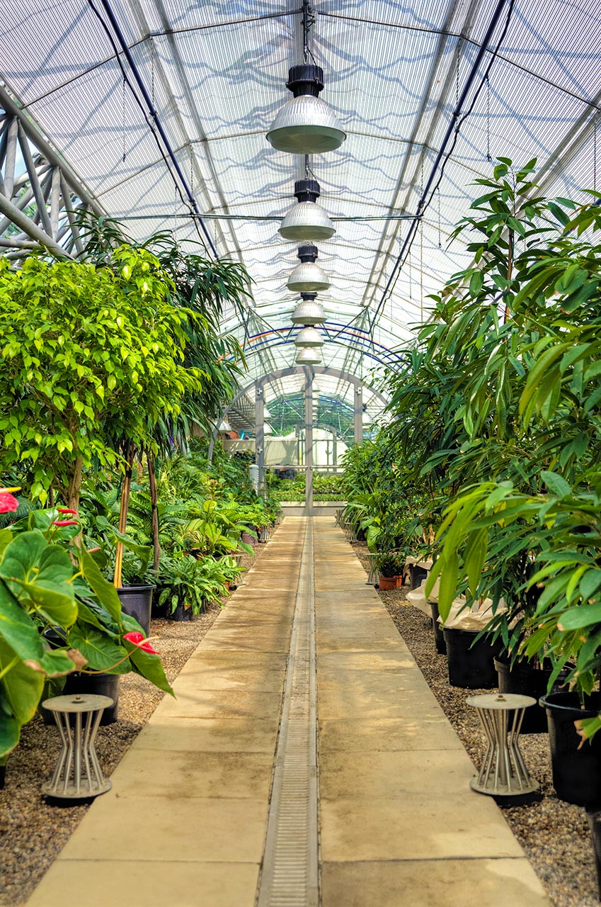 Most commonly, this is achieved by employing the greenhouse effect. The basic element of passive solar systems is a glass surface oriented in the right direction which allows sunlight to pass inside the building, but hinders radiation from the inside to the outside. Glass surfaces are found in winter gardens, glass roofs and porches, south-oriented large windows, or in Trombe walls or transparent thermal insulation. The Greenhouse effect can be further exploited for the growing of vegetables and tropical plants.