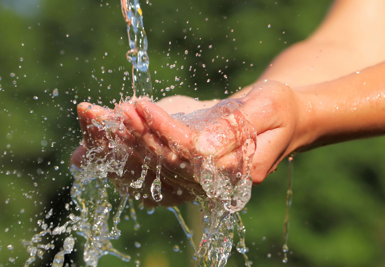 Molecule of water H₂O. The molecule of water consist of two atoms of hydrogen and one atom of oxygen.