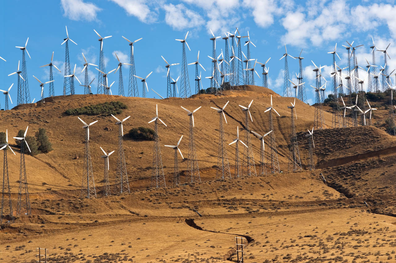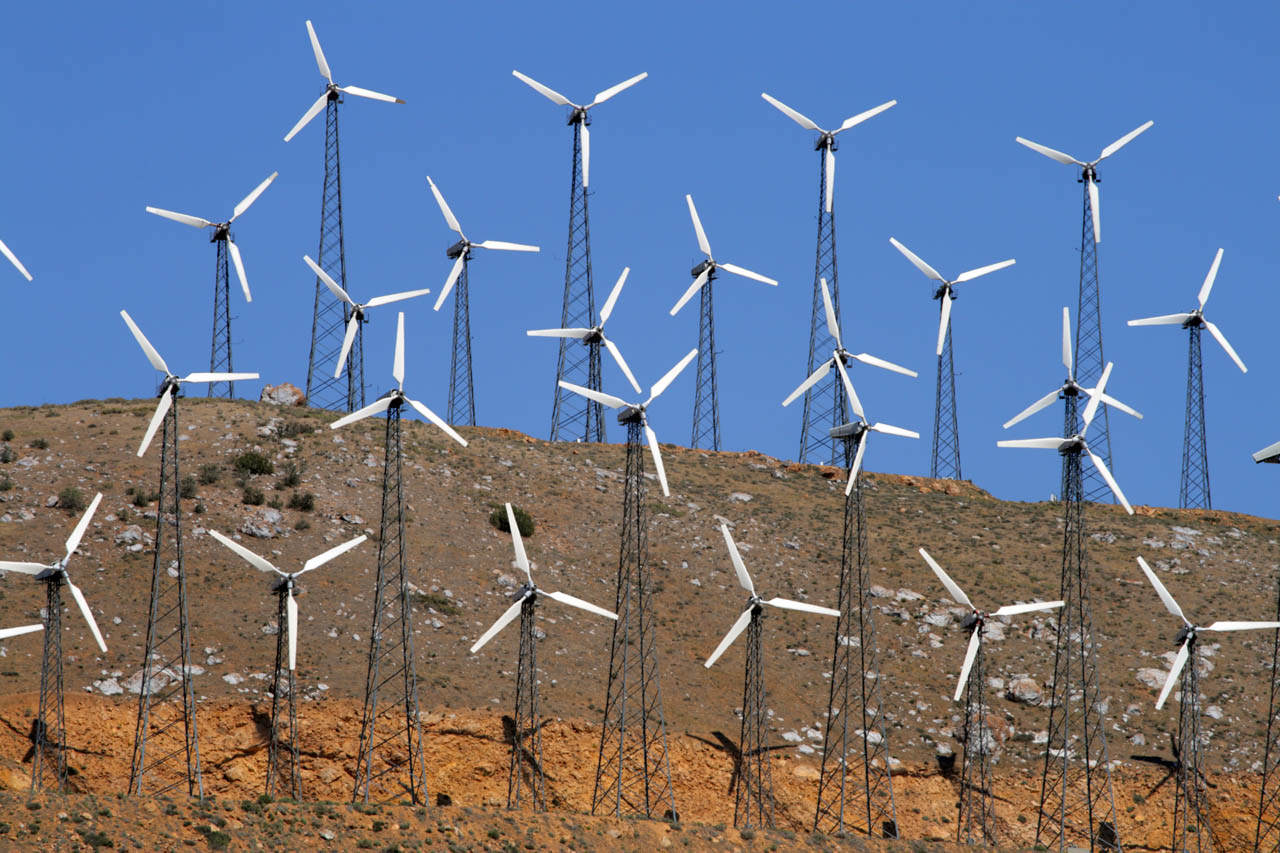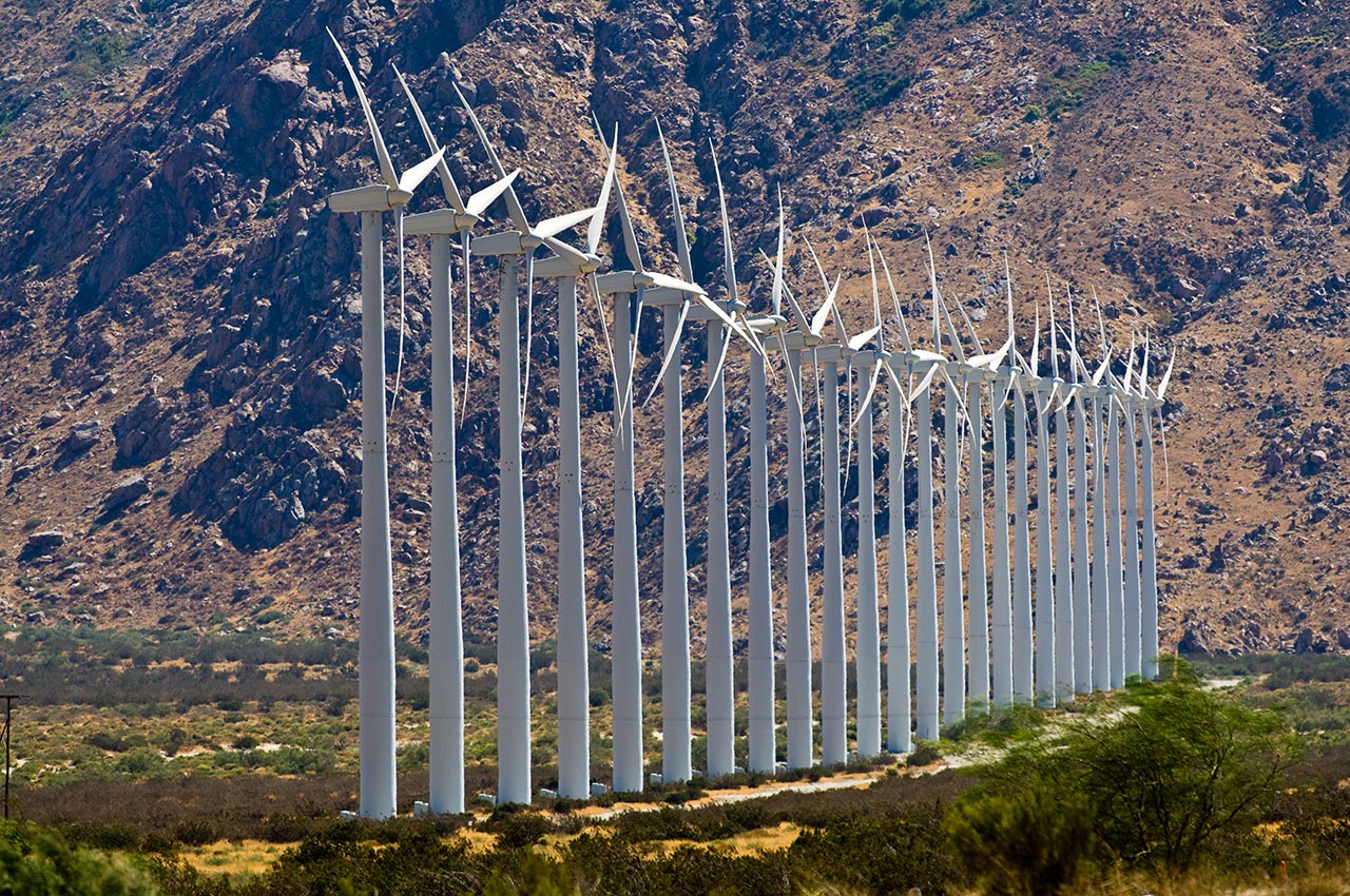 Wind turbines in this wind farm occupy a significant portion of the cost and utilize the regular wind patterns of this region.